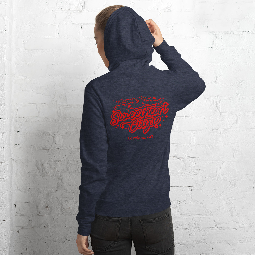 For the days when your heart is in Loveland but your boots are somewhere up a winding mountain trail. This hoodie is soft, cozy, and ready for crisp mornings, scenic overlooks, and that moment when you stop halfway up the hike just to take in the view. Throw it on, breathe deep, and let the world know exactly where your heart belongs. Perfect for cool mountain hikes, sunset strolls, and anyone who carries a little piece of Loveland with them wherever they go.